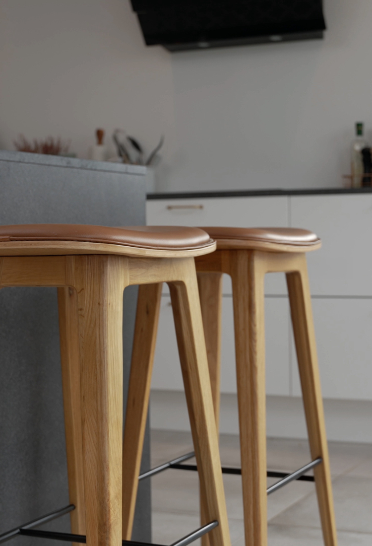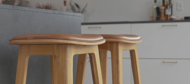 Vi använder SPOOR-läder för alla våra läderprodukter, inklusive matstolar, sittsäckar och barstolar.