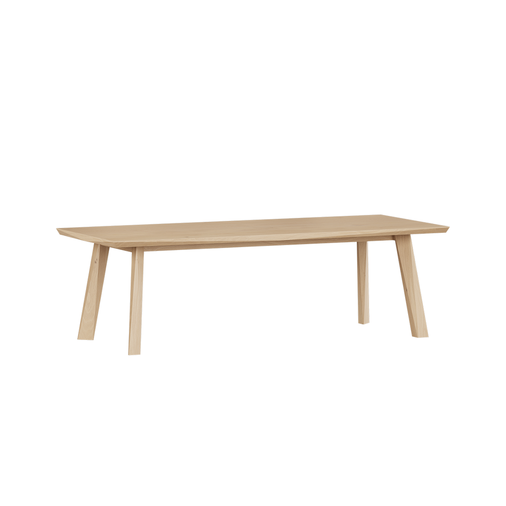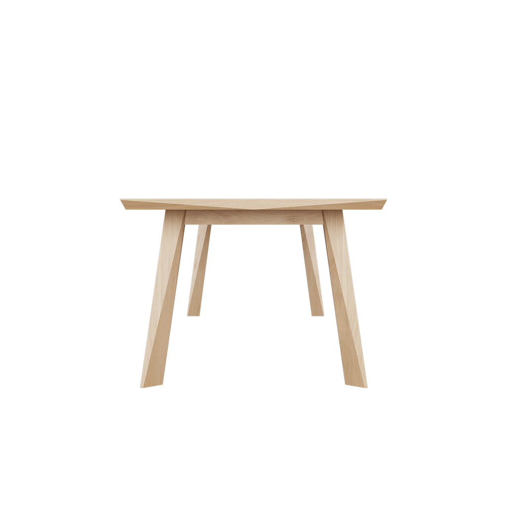 Ett estetiskt vackert matbord tillverkat av europeisk ek med vackra hantverksdetaljer och detaljerat utformade fasetter. Bordets fasetter skapar ett unikt uttryck som förändras med det skiftande ljuset. Detta ger en subtil dynamik till bordets design.