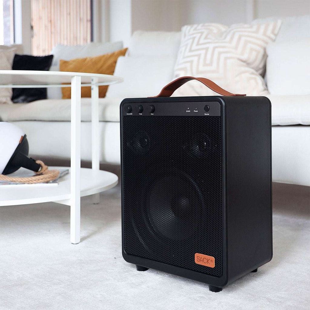 Boom 150 är perfekt att ta med: den väger bara 4,8 kg och har ett fint läderhandtag, så det är lätt att transportera.