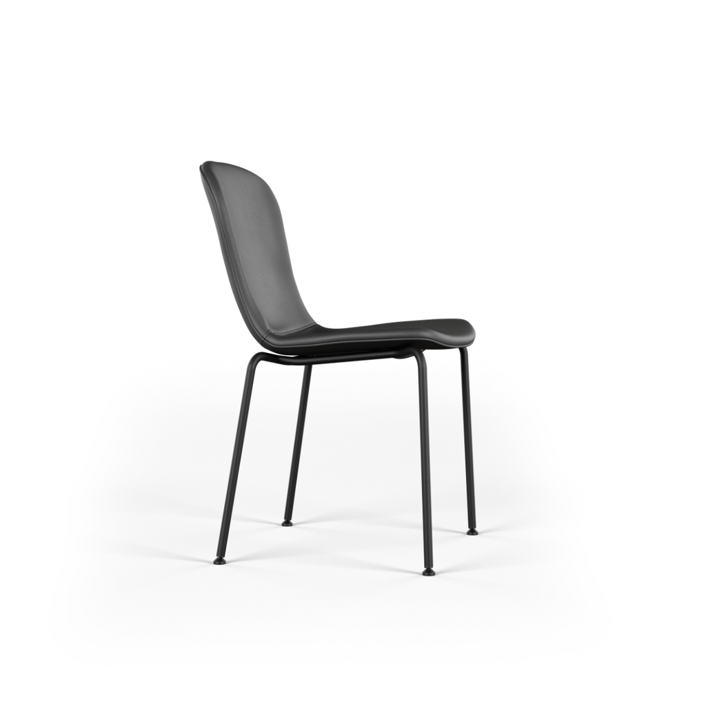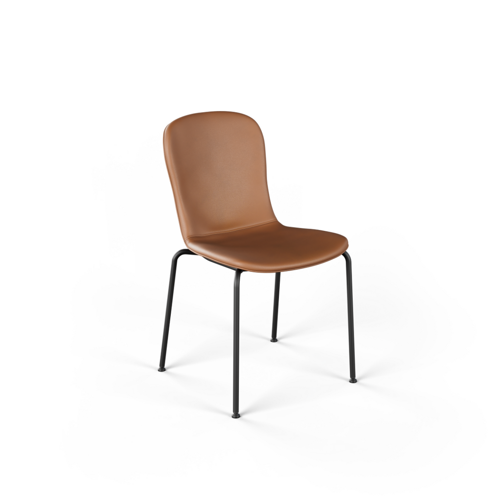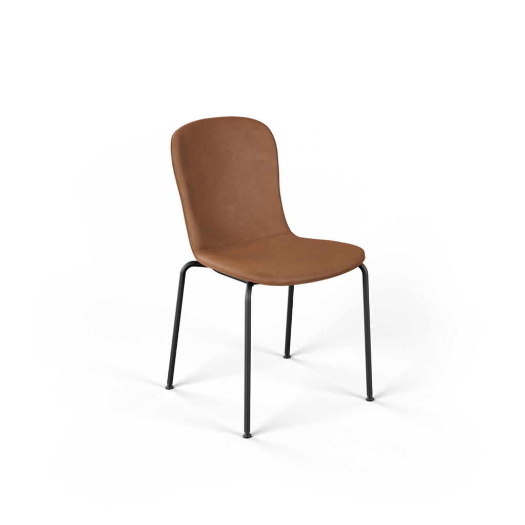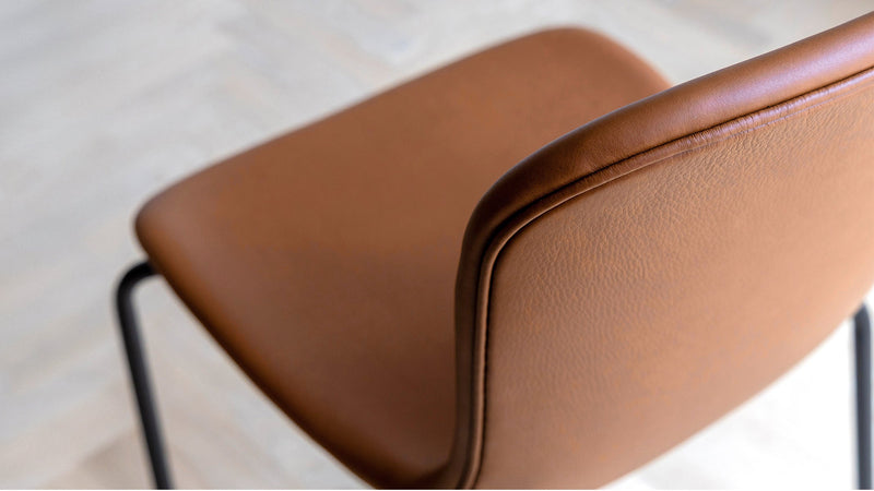 Chair no. One är en matstol med kompromisslös design tillverkad av noggrant utvalda material med fokus på hållbarhet och kvalitet. Stommen är tillverkad av pulverlackerat återvunnet stål, medan sitsen är tillverkad av återvunnen plast och stoppad i SPOOR-läder av högsta kvalitet.