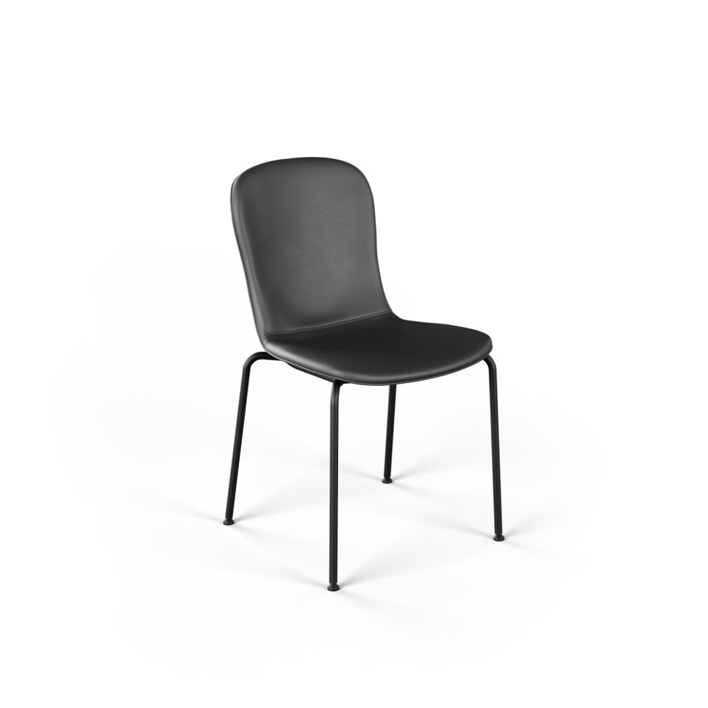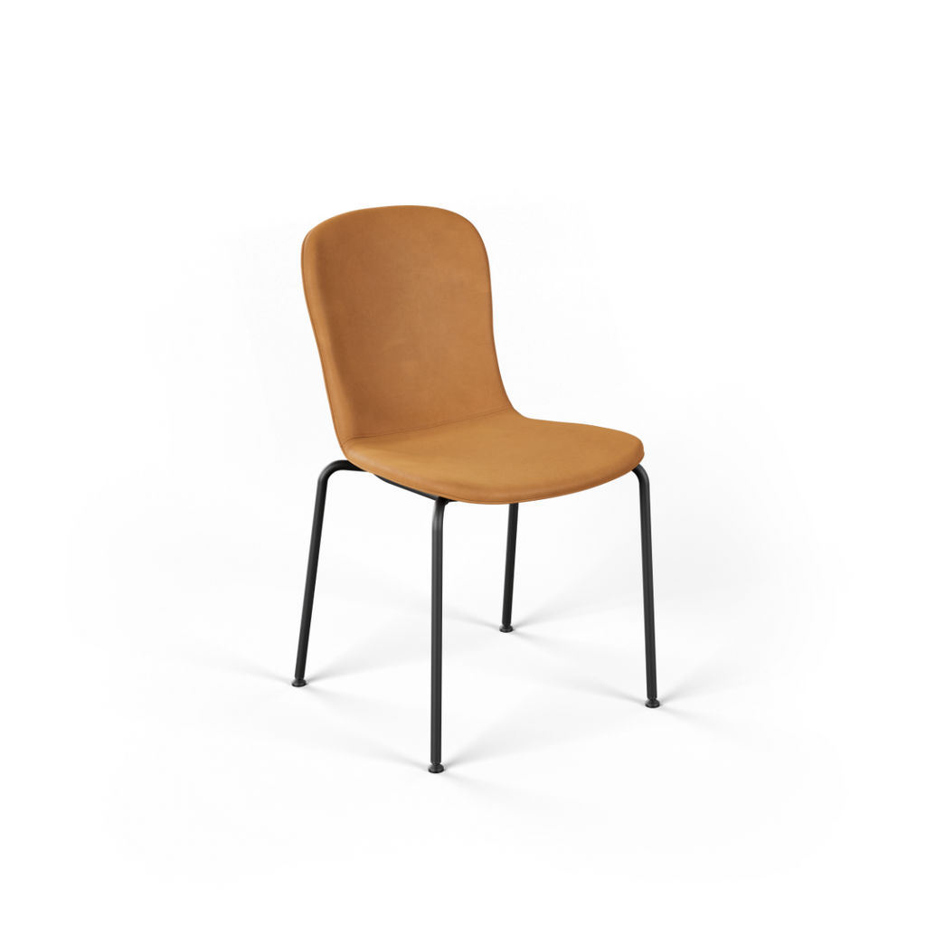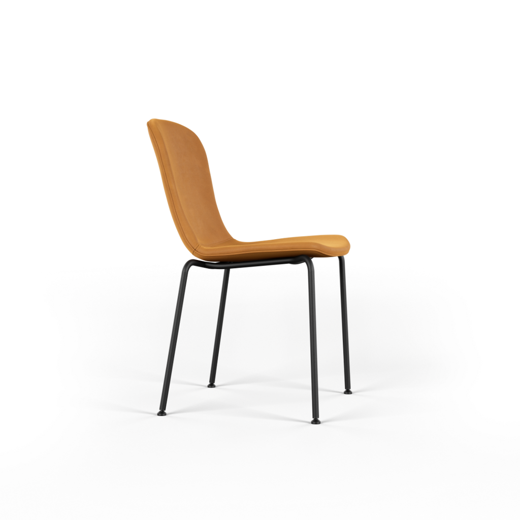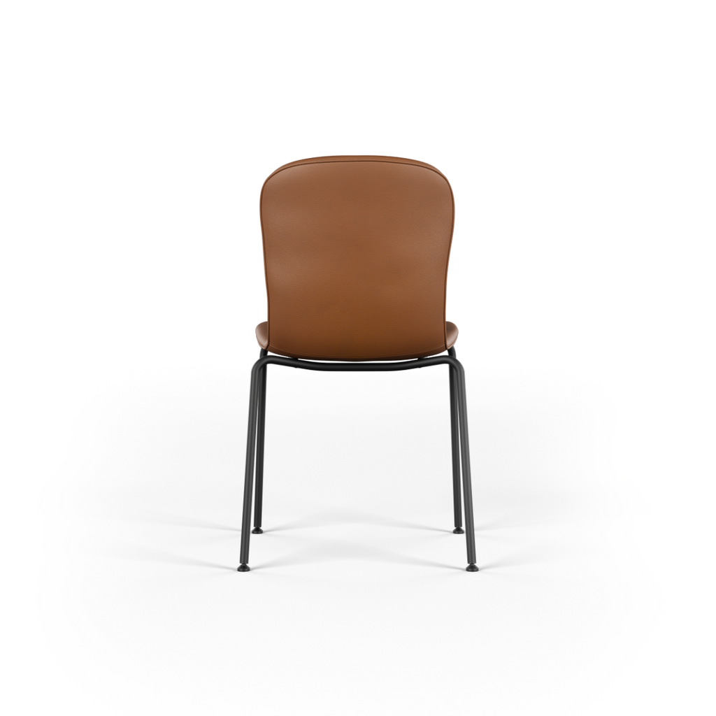 Chair no. One är en matstol med kompromisslös design tillverkad av noggrant utvalda material med fokus på hållbarhet och kvalitet. Stommen är tillverkad av pulverlackerat återvunnet stål, medan sitsen är tillverkad av återvunnen plast och stoppad i SPOOR-läder av högsta kvalitet.