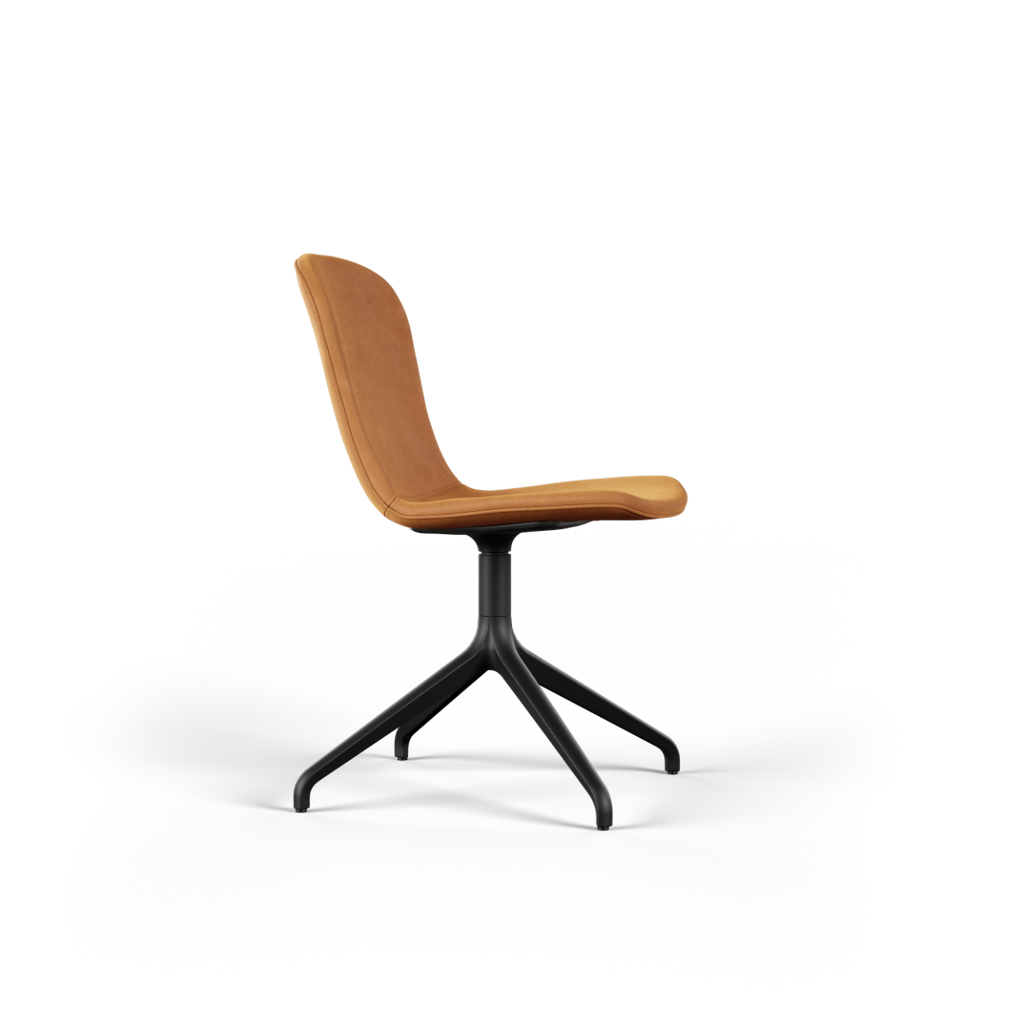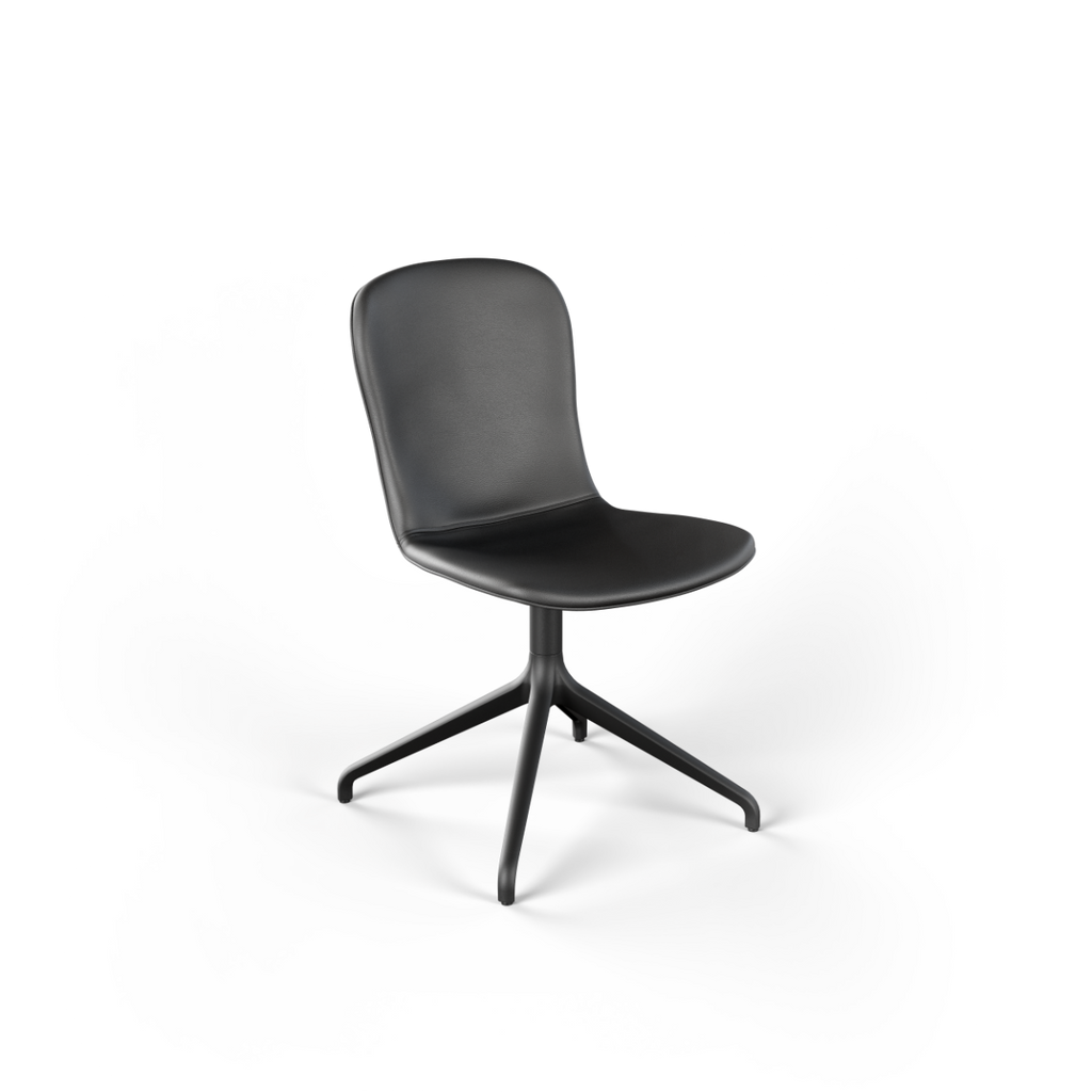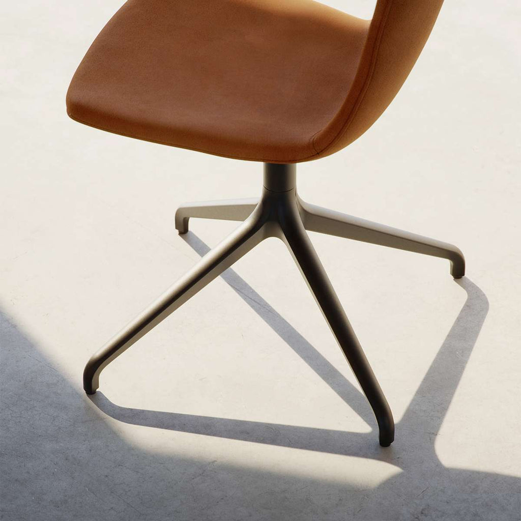 Med vridbart underrede i aluminium (ett vridbart underrede gör att stolen kan roteras 360 grader runt sin egen axel)