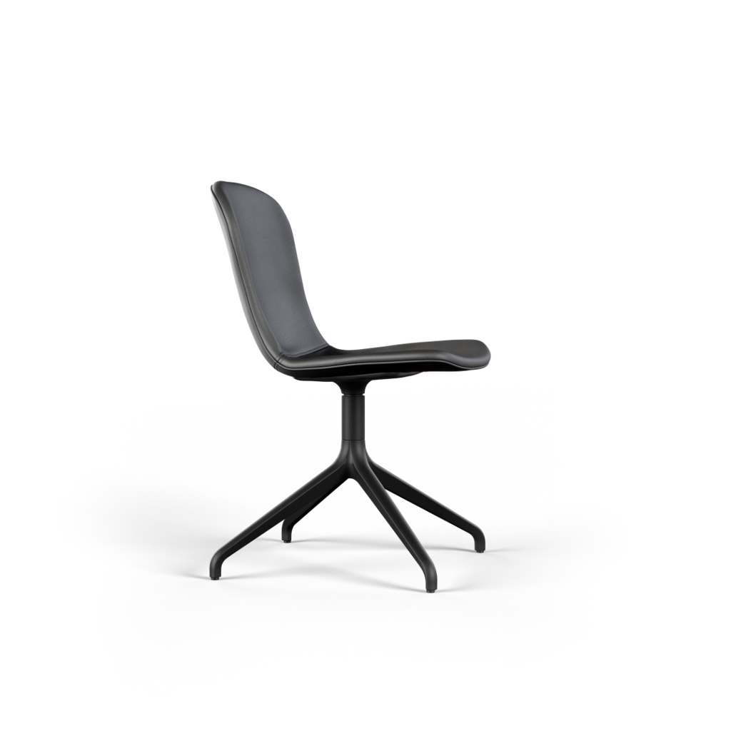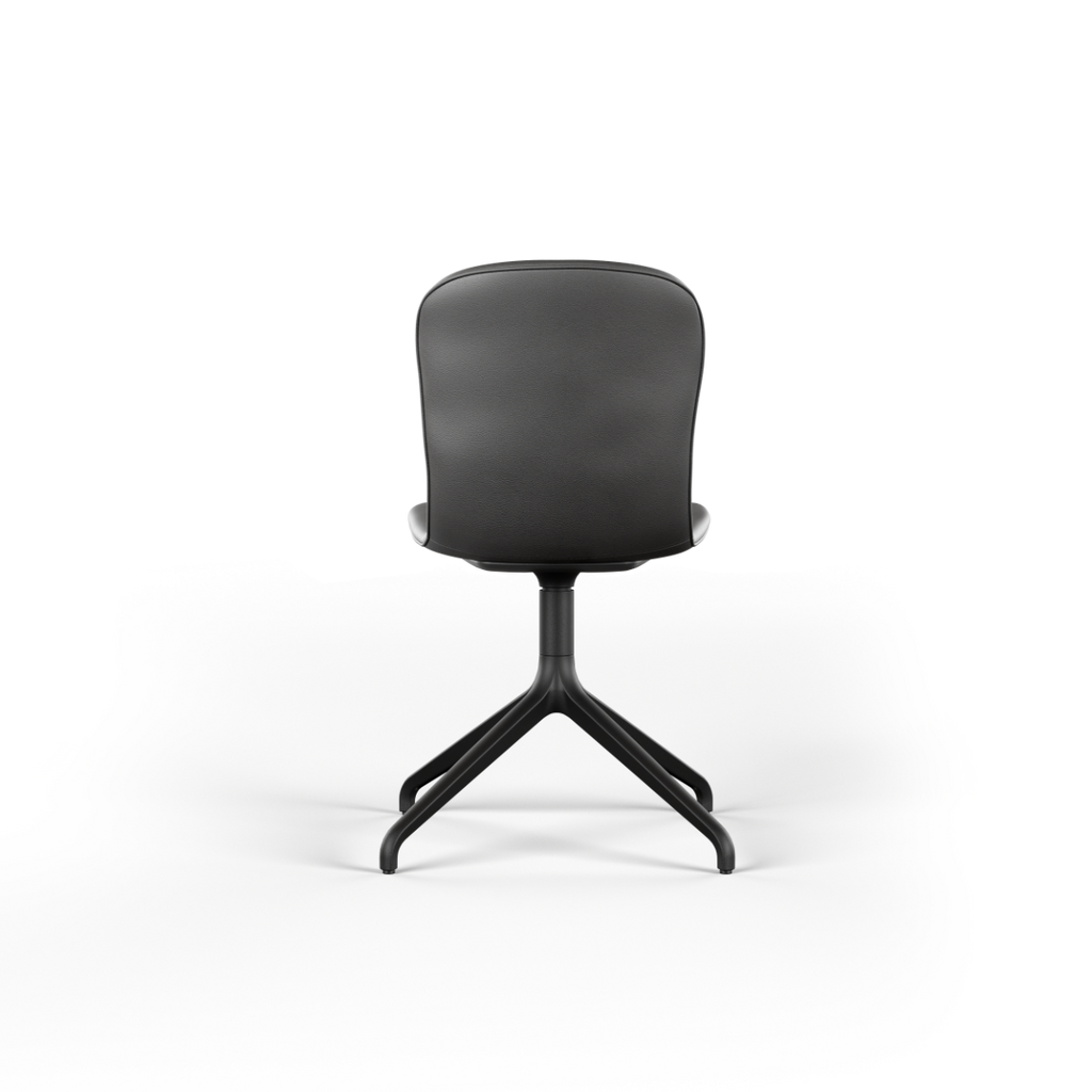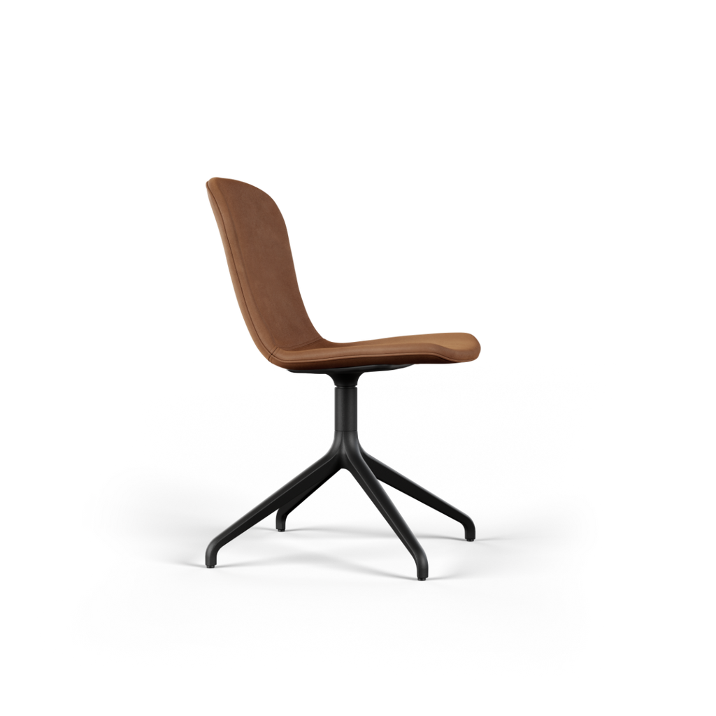 Med vridbart underrede i aluminium (ett vridbart underrede gör att stolen kan roteras 360 grader runt sin egen axel)