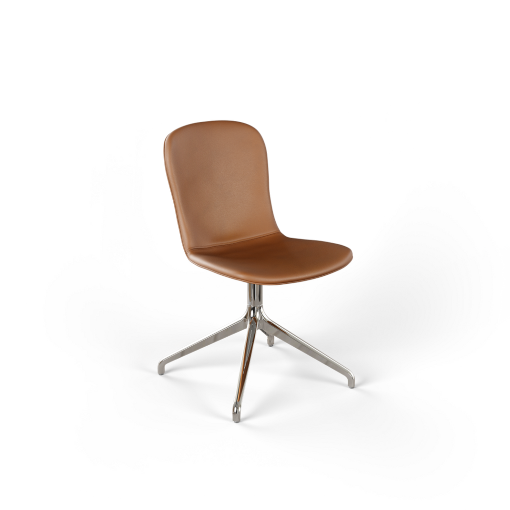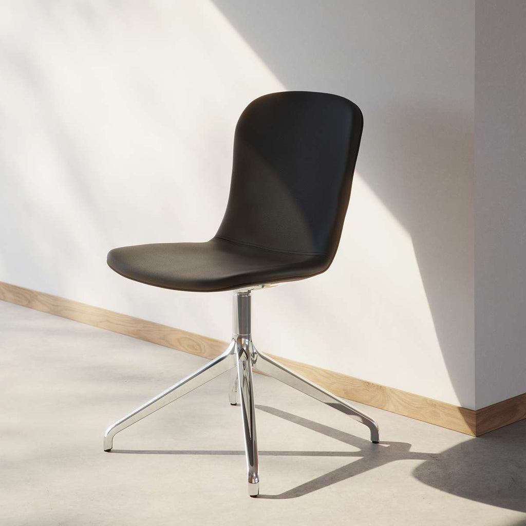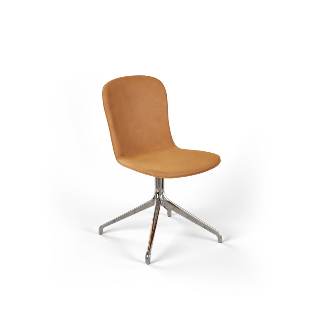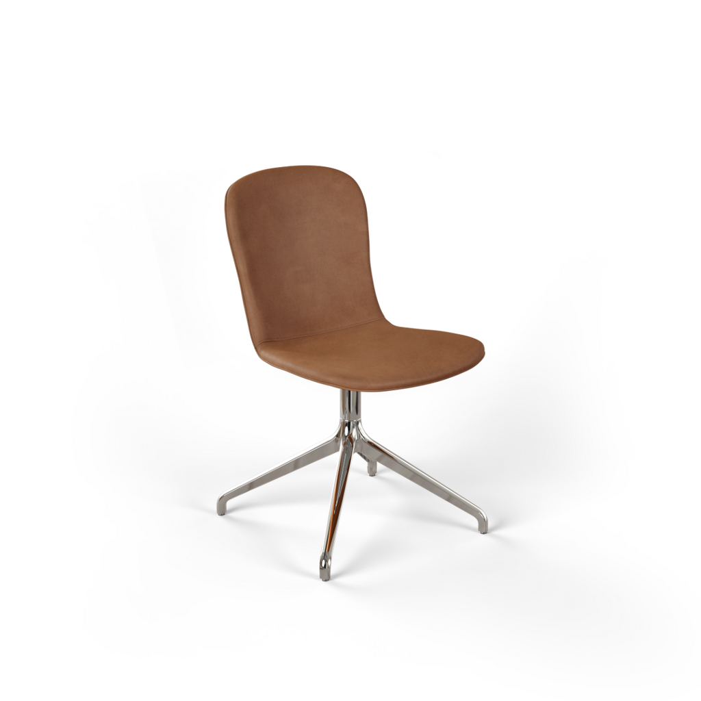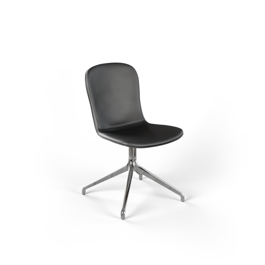 Med vridbart underrede i aluminium (ett vridbart underrede gör att stolen kan roteras 360 grader runt sin egen axel)
