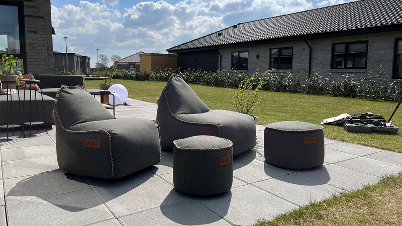 Cobana Junior Lounge Chair tål vatten, men du kan tippa stolen så att regnet lättare glider av stolen