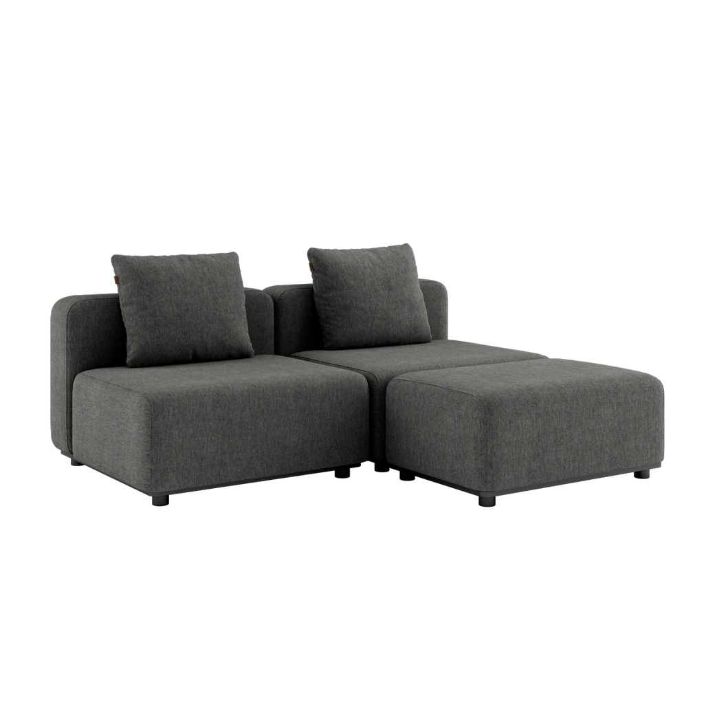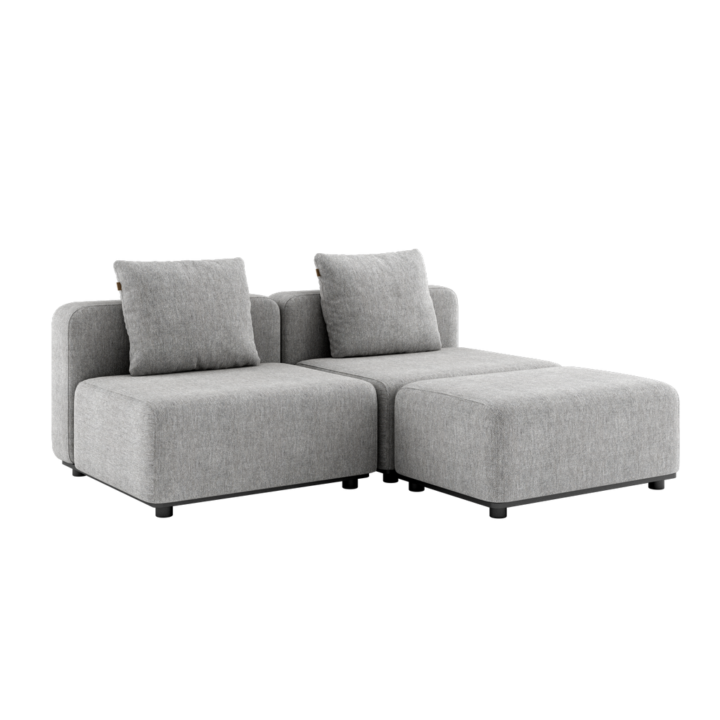 De lätta modulerna gör det enkelt att ändra uppställningen när behoven förändras, utan att kompromissa med stabilitet eller komfort. Konstruktionen bygger på en pulverlackerad aluminiumram och slitstarka material som är anpassade för utomhusbruk året runt. Textilen är vatten- och smutsavvisande, snabbtorkande och UV-beständig, vilket gör att soffan behåller form, funktion och färg över tid.