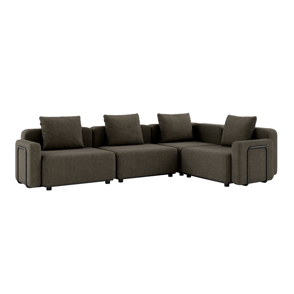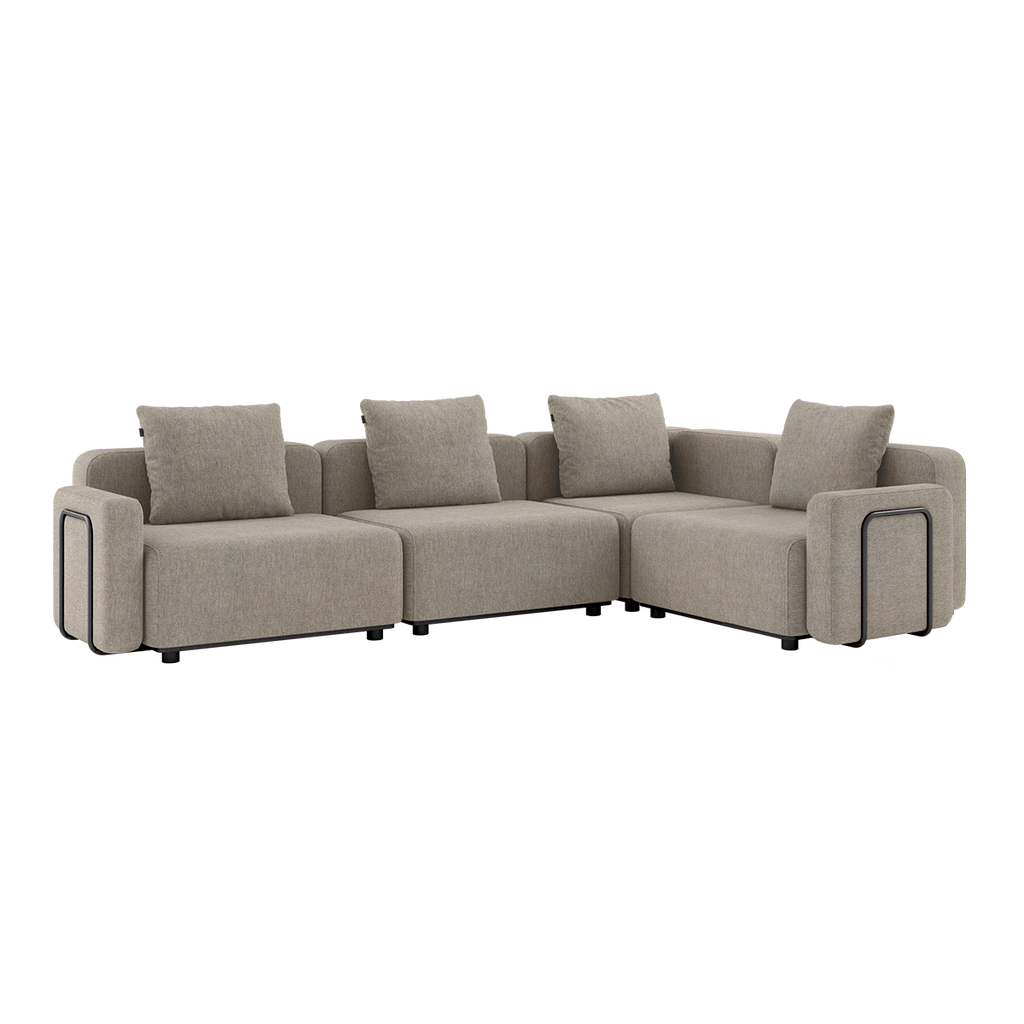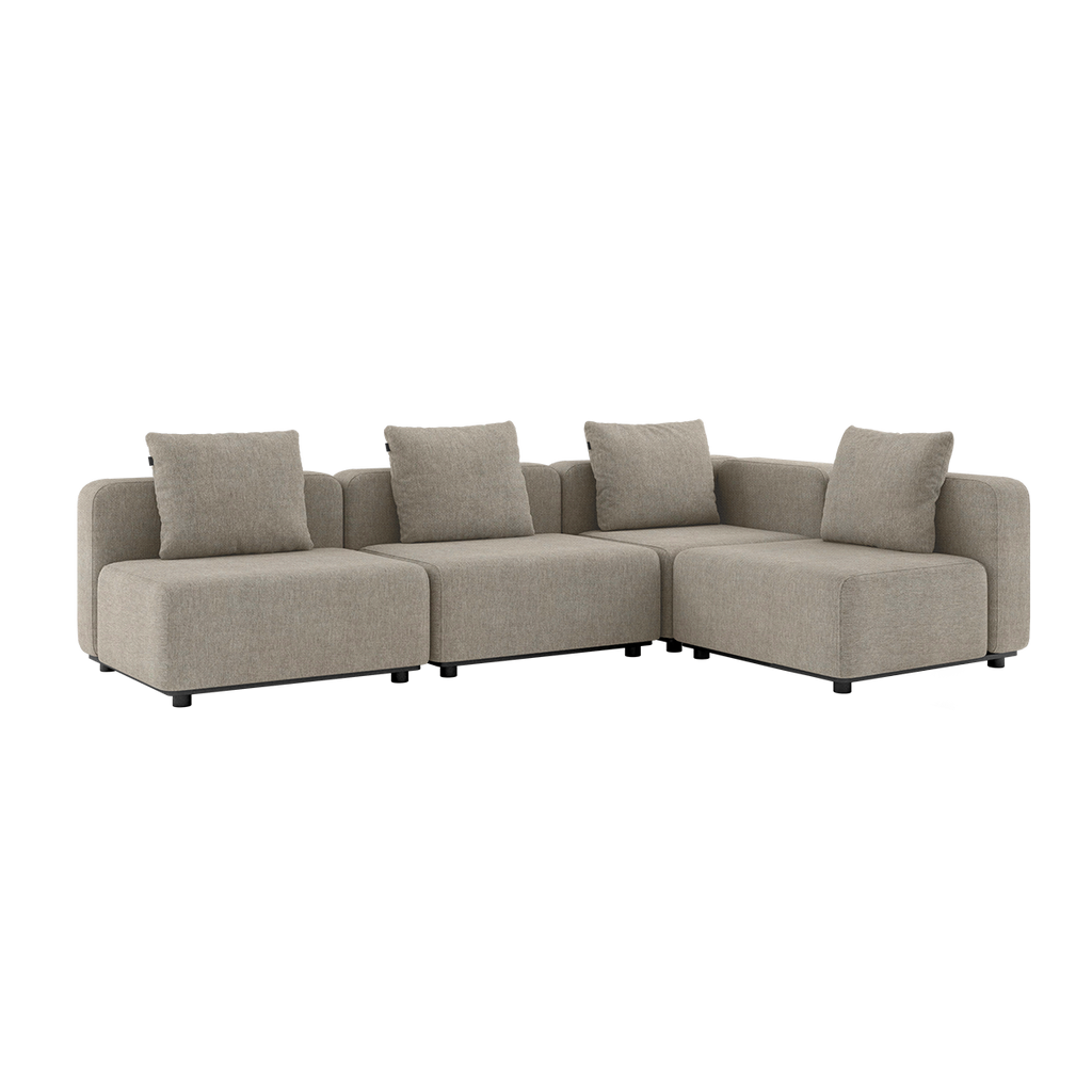 De lätta modulerna gör det enkelt att ändra uppställningen när behoven förändras, utan att kompromissa med stabilitet eller komfort. Konstruktionen bygger på en pulverlackerad aluminiumram och slitstarka material som är anpassade för utomhusbruk året runt. Textilen är vatten- och smutsavvisande, snabbtorkande och UV-beständig, vilket gör att soffan behåller form, funktion och färg över tid.