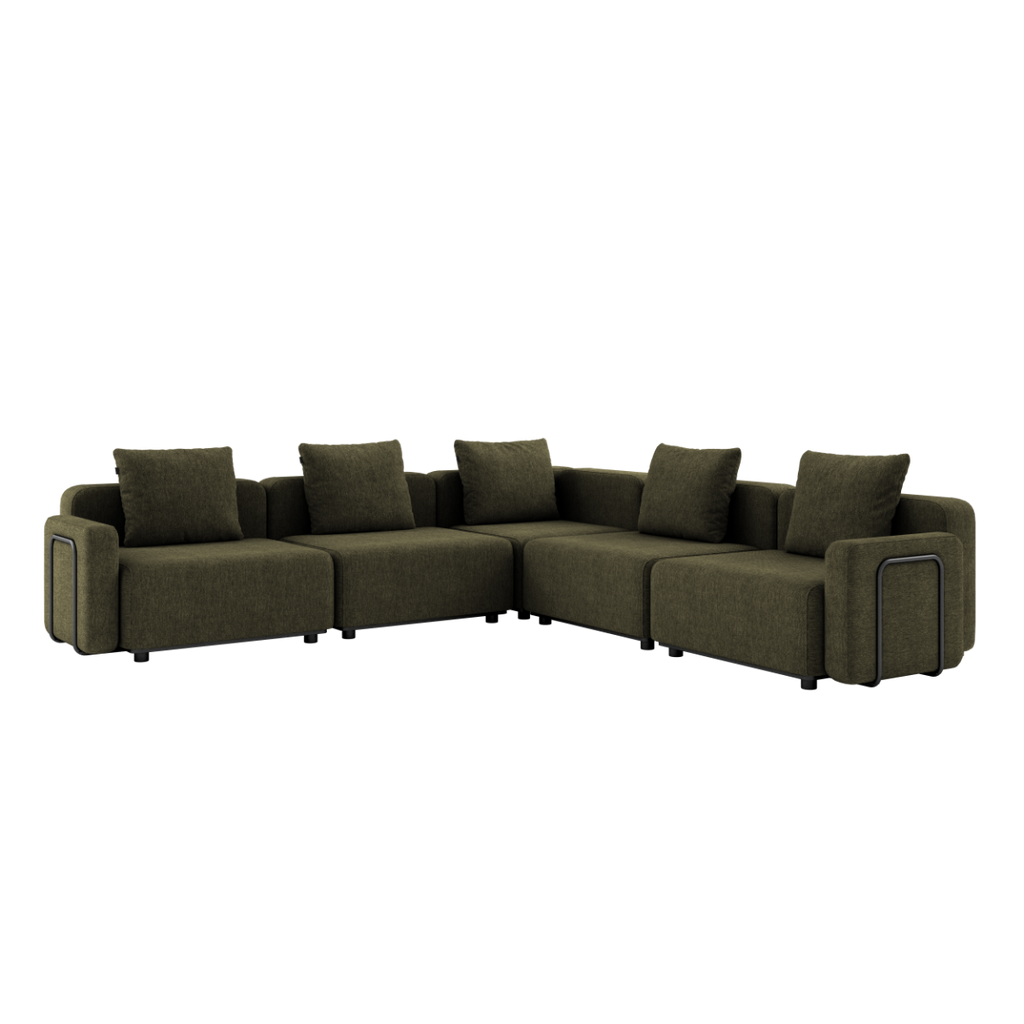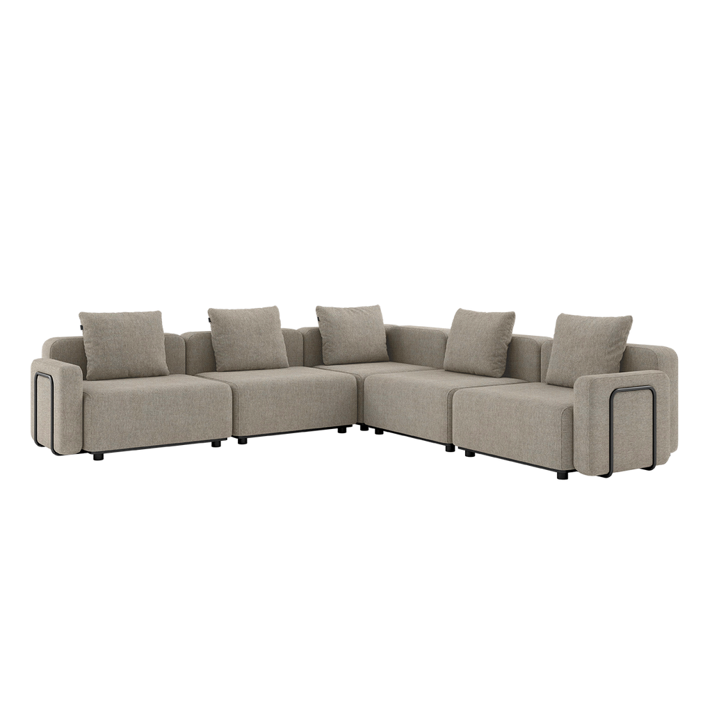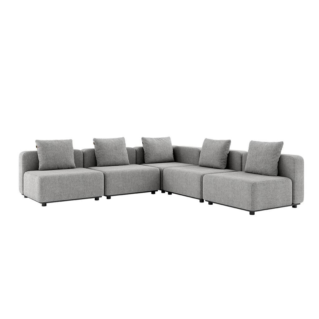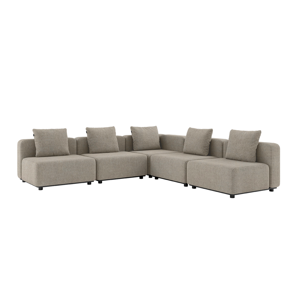 De lätta modulerna gör det enkelt att ändra uppställningen när behoven förändras, utan att kompromissa med stabilitet eller komfort. Konstruktionen bygger på en pulverlackerad aluminiumram och slitstarka material som är anpassade för utomhusbruk året runt. Textilen är vatten- och smutsavvisande, snabbtorkande och UV-beständig, vilket gör att soffan behåller form, funktion och färg över tid.