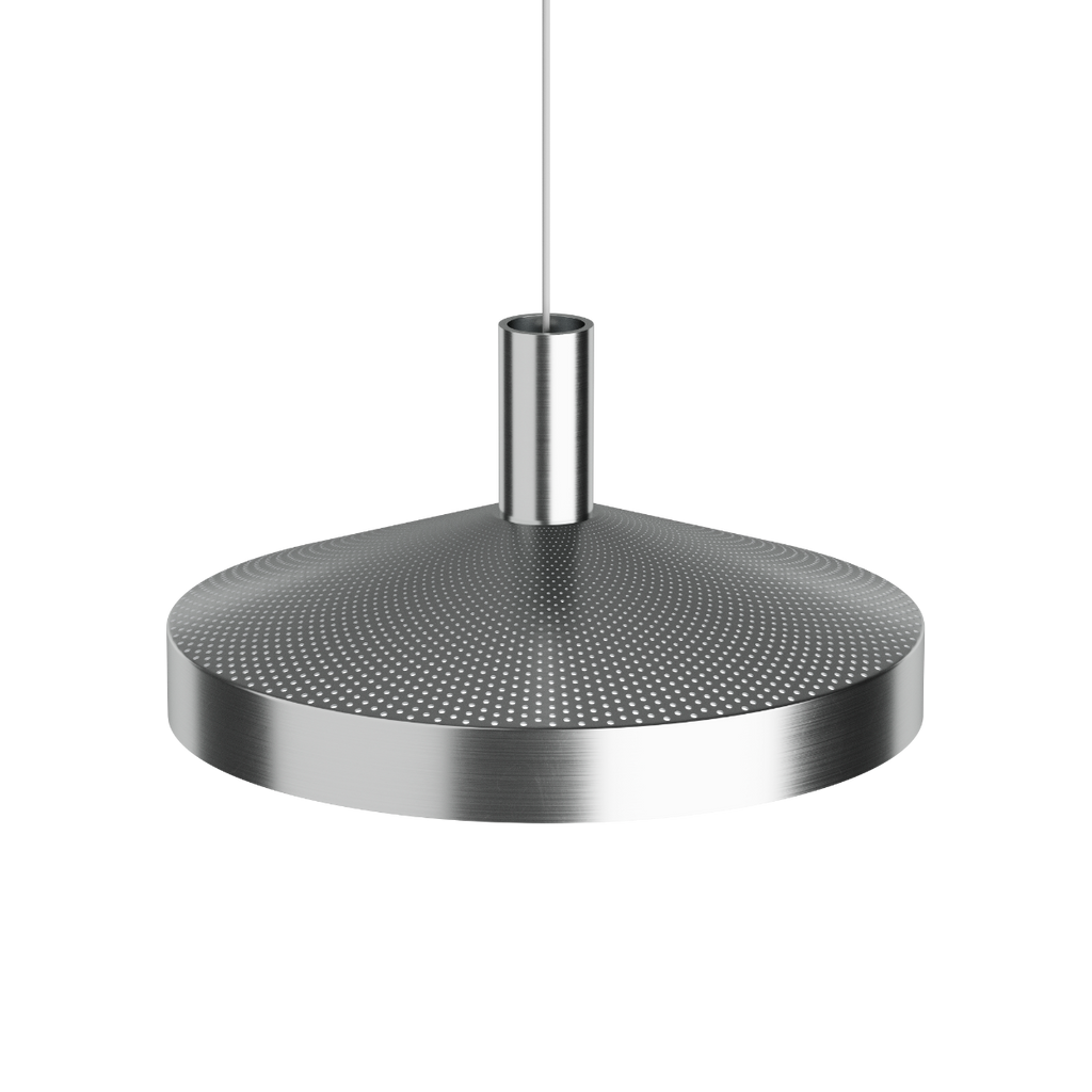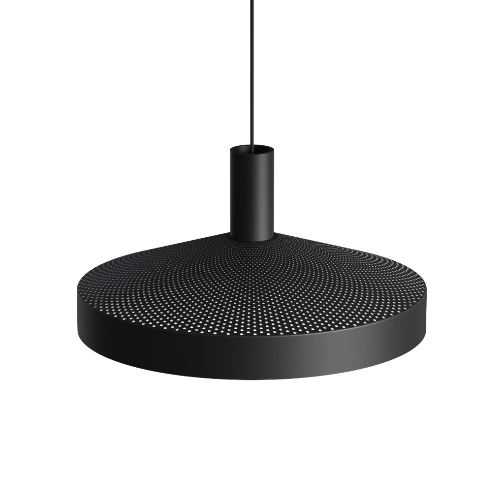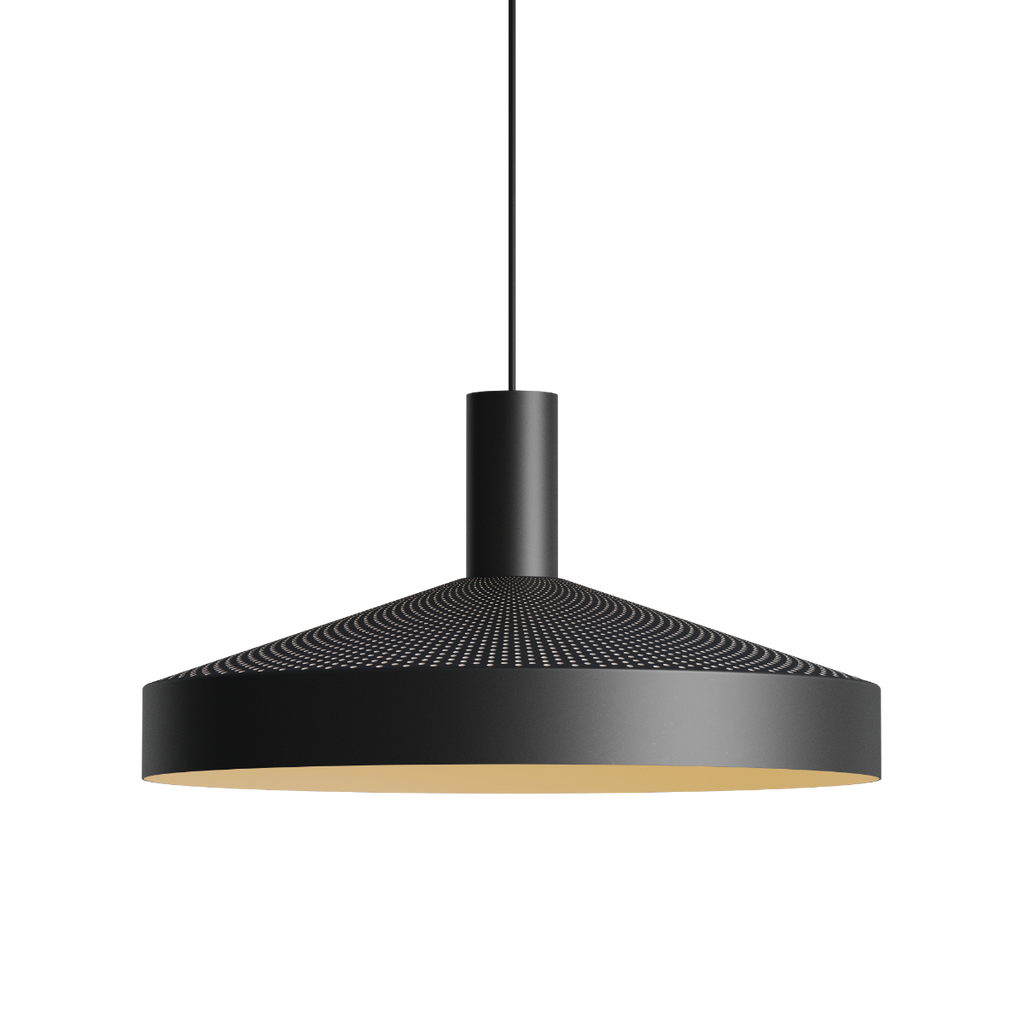 Dawn-pendeln är baserad på den klassiska verkstadspendeln, där en laserskuren perforering i toppen av lampan ger en behaglig och rymlig belysning. Lampans funktionella belysning kommer från den vitmålade innerskärmen och den infällda ljuskällan. Den karaktäristiska böjen i lampans kant ger en mer definierad ljusriktning, samtidigt som perforeringen sprider ljus både uppåt och nedåt.