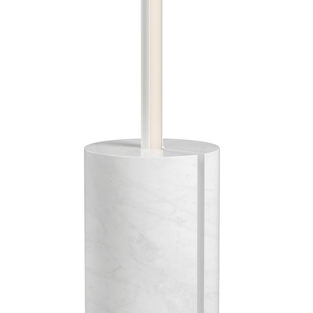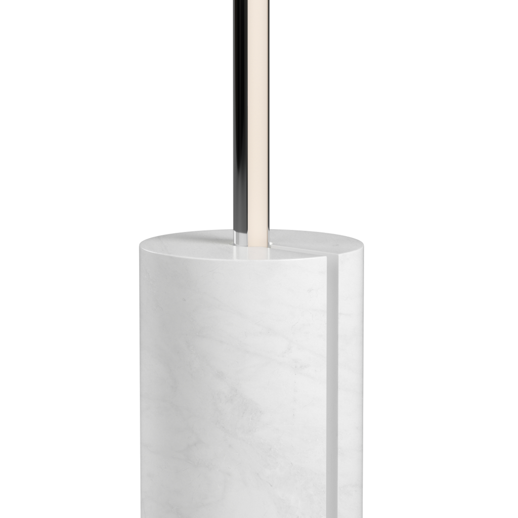 Kombinationen av lampans aluminiumprofil och den massiva marmorfoten skapar en vacker kontrast till lampans industriella och minimalistiska design.