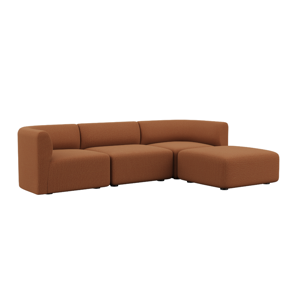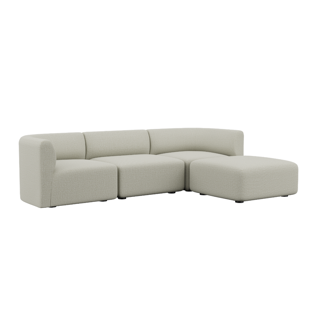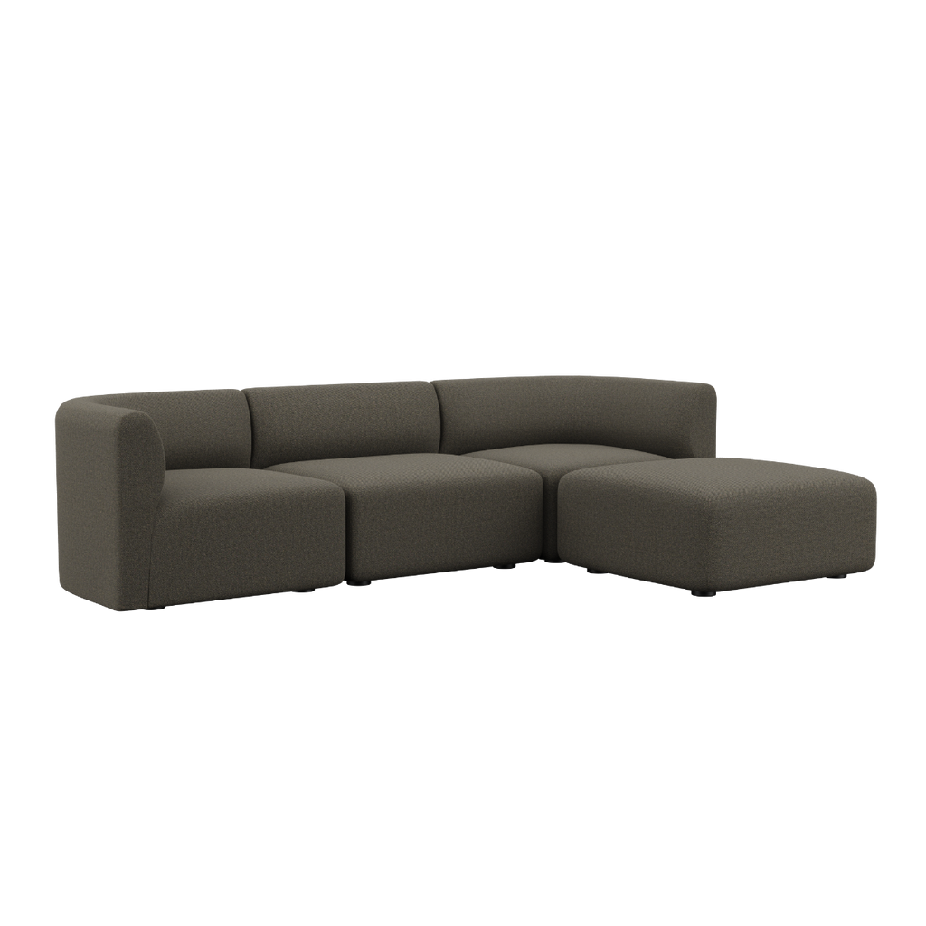 Dessutom kan puffen monteras på båda sidor av sittmodulen, vilket skapar en open end-soffa.