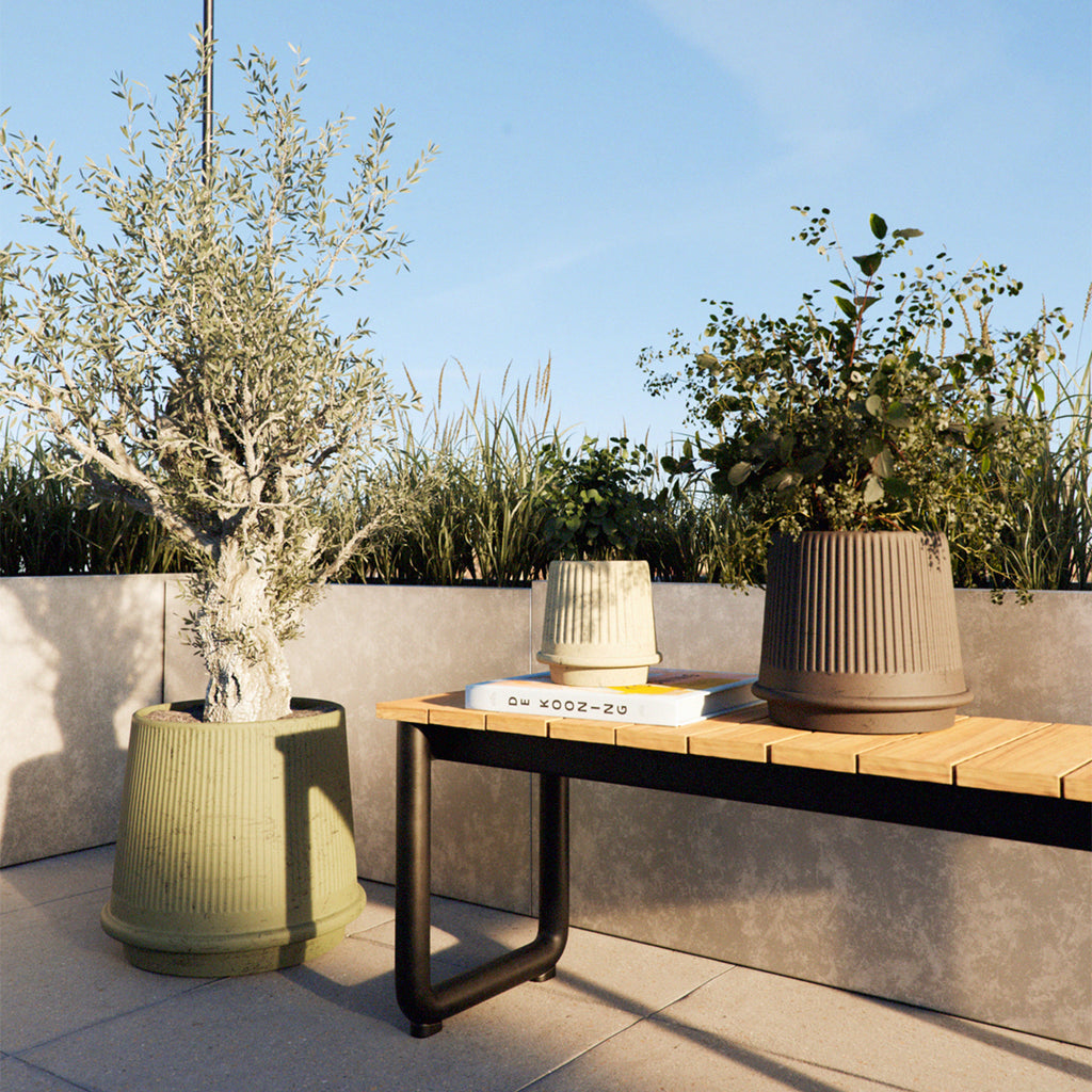 Gaia 38 är en frosttålig utekruka med matt, räfflad yta. Formen är inspirerad av antikens Greklands estetik – namnet Gaia är taget från jord- och fruktbarhetsgudinnan i grekisk mytologi.