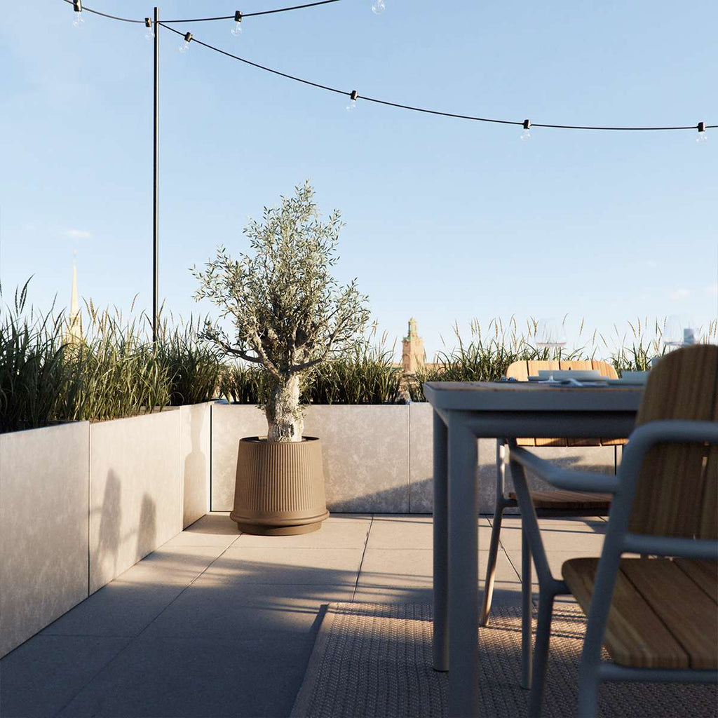 Krukan är tillverkad i keramik vilket skapar ett naturligt utseende och vacker finish. Gaia tål frost ner till –20 °C och har dräneringshål i botten för överflödigt vatten.