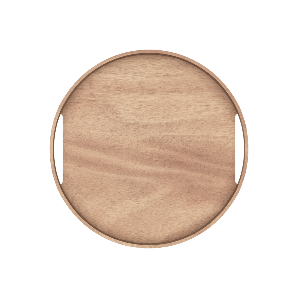 Nordic Serving Tray är en serveringsbricka i trä med en enkel, stilren design. Med en diameter på 50 cm står brickan stadigt och är lätt att bära runt i hemmet – när du serverar för gäster, till frukost på sängen eller när du bara vill gå en gång. Med sin stora yta och de nästan dolda handtagen som elegant smälter in i designen finns det gott om plats för alla dina saker på brickan. Brickan har dessutom en hög kant på 5 cm som ser till att allt stannar på plats.
