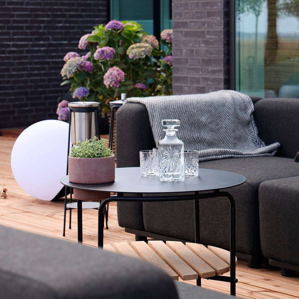 En rund utskärning i bordet gör det möjligt att placera ditt tillbehör från SACKit i bordet. Mixa och mixa med Light 150-utomhuslampan, blomsterkrukan, oljelampan eller vinkylaren.