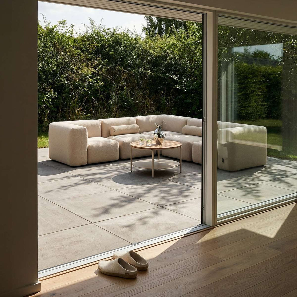 Soffan är enkel att flytta men står stabilt när den väl är placerad. Med den integrerade remmen kan den lätt flyttas från terrass till trädgård, från sol till skugga, eller dit där utevistelsen pågår. Konstruktionen ger flexibilitet utan att kännas lätt eller ostadig.