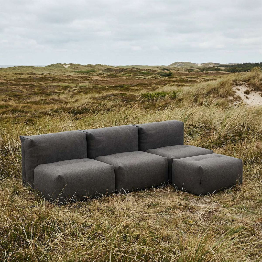 Soft Sofa Outdoor är uppbyggd med shredded foam i vattentäta polyesterpåsar, vilket säkerställer komfort och form över tid. Klädseln är tillverkad i slitstarkt olefin-tyg med hög ljusäkthet som tål sol, vind och regn. Soffan kan stå ute året runt och är alltid redo att användas.